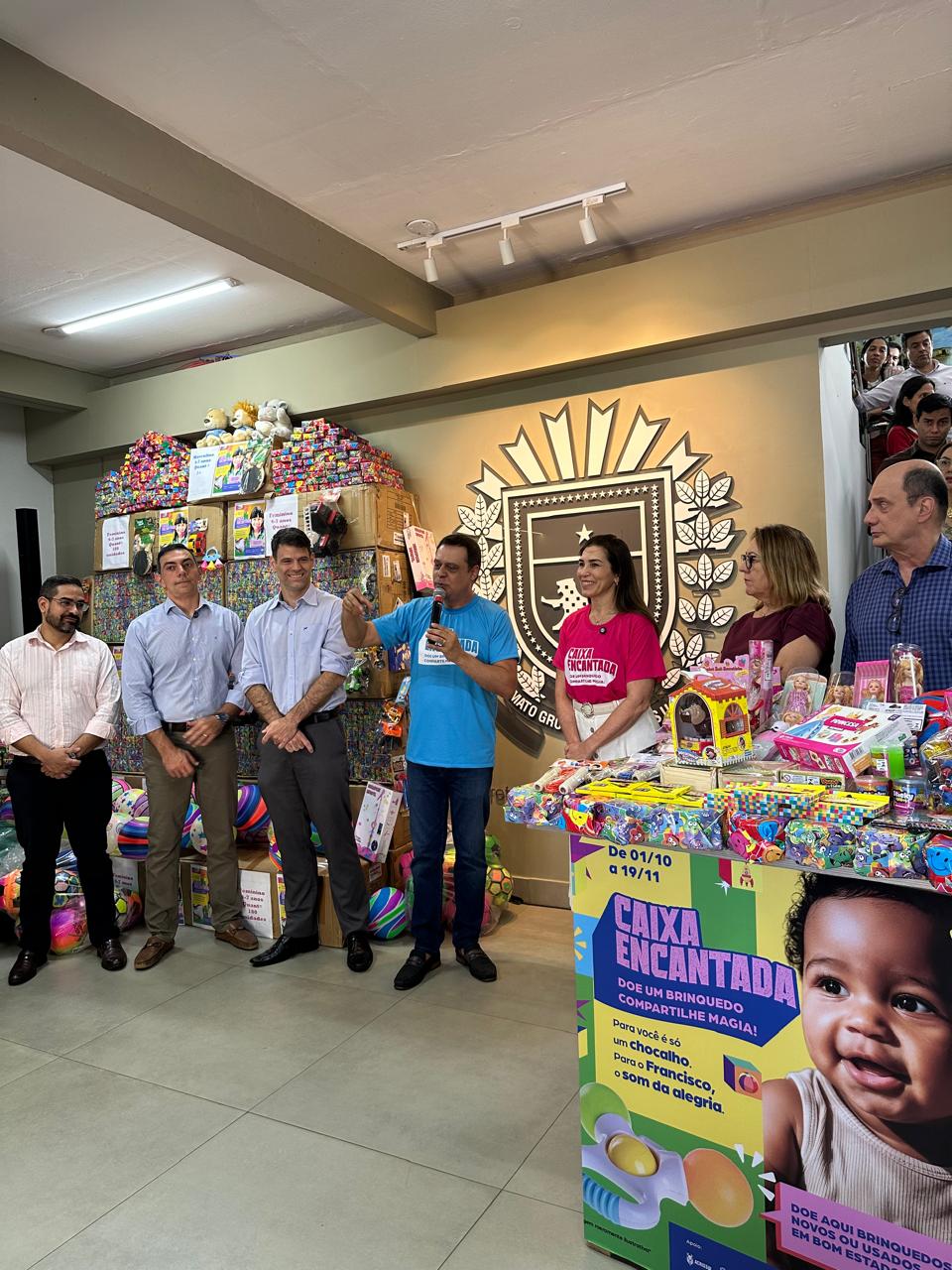O Sindifiscal Solidário participou, nesta quarta-feira (19), de mais uma etapa da campanha “Caixa Encantada – Doe um brinquedo! Compartilhe magia!”, que arrecada brinquedos para crianças em situação de vulnerabilidade em Mato Grosso do Sul. Neste ano, o sindicato entregou mais de 150 brinquedos.